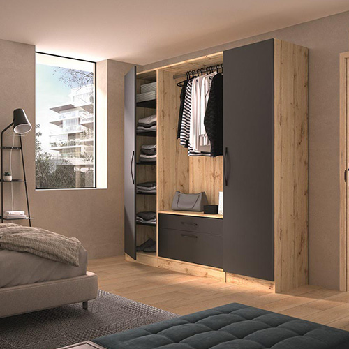 – Dressing 2D Ajust, linéaire semi-ouvert décors chêne authentique et gris carbone
